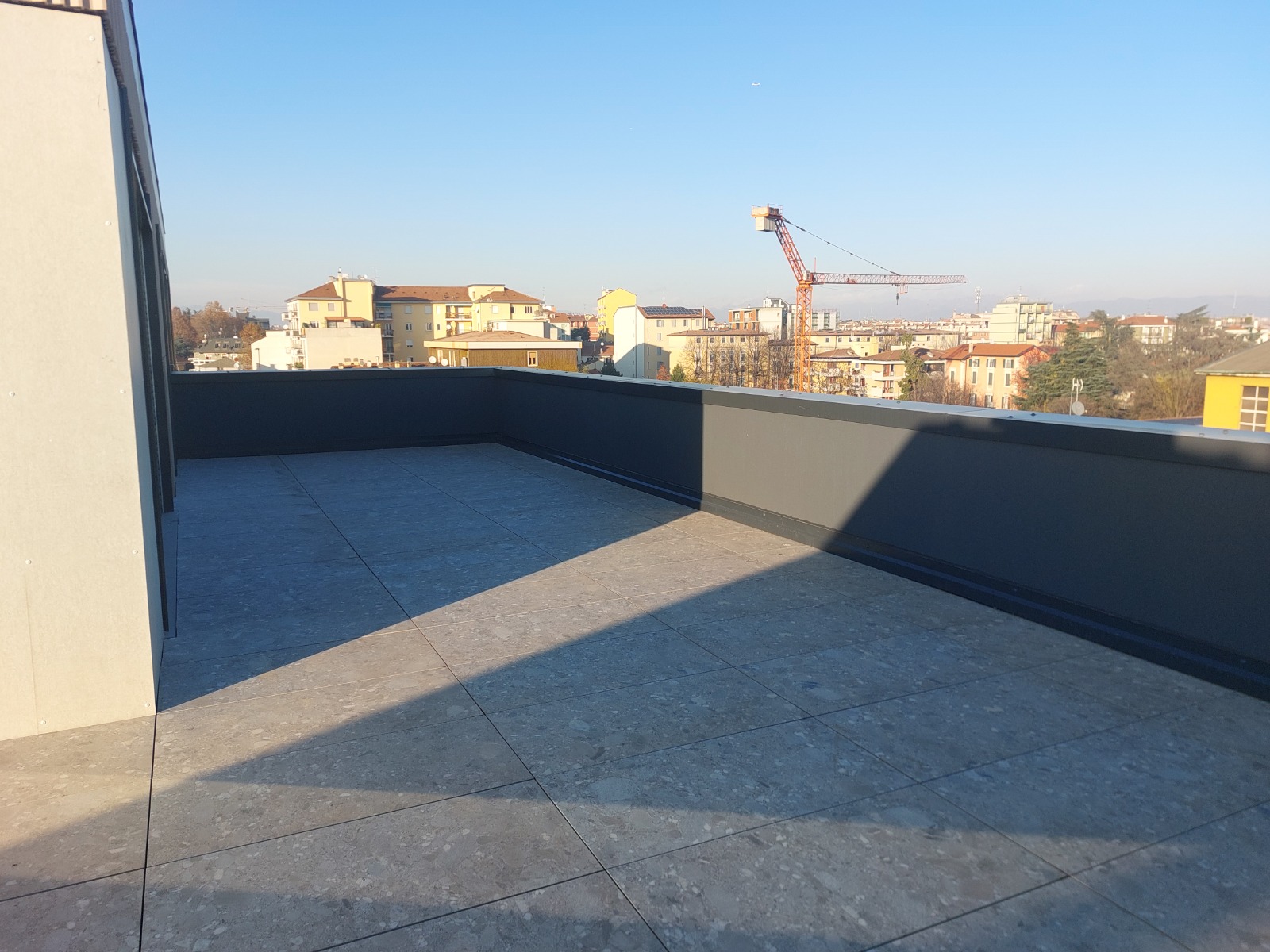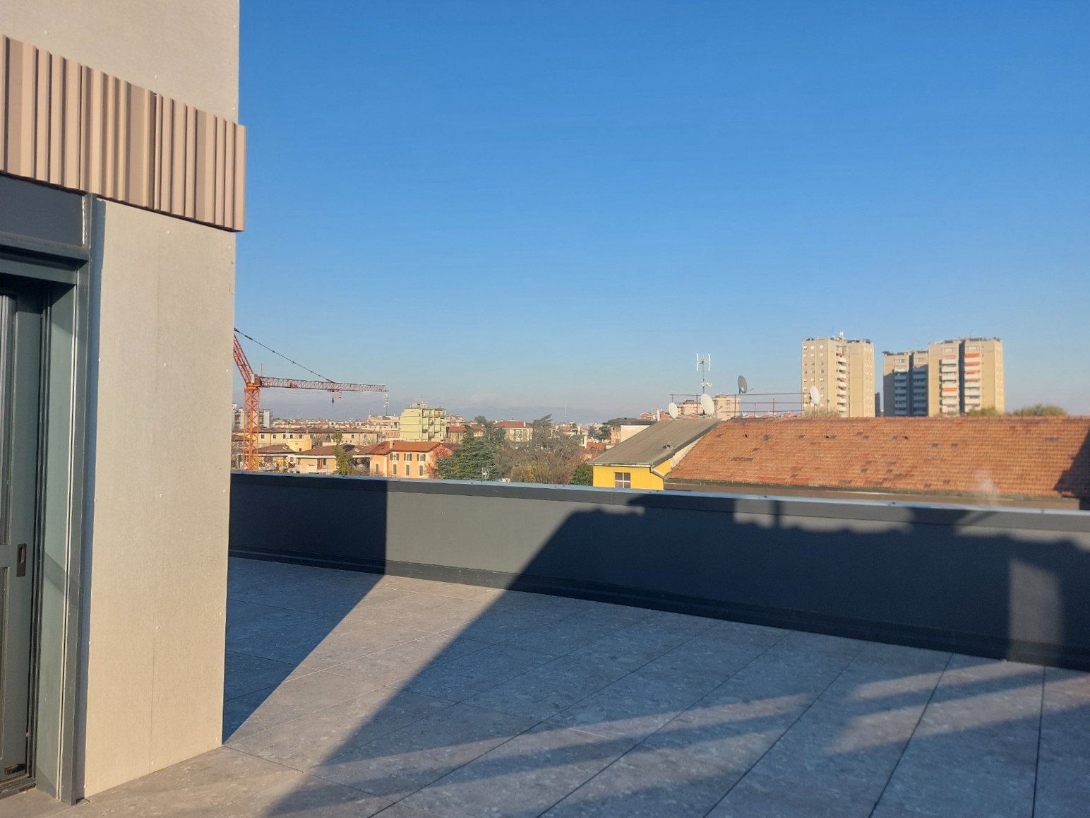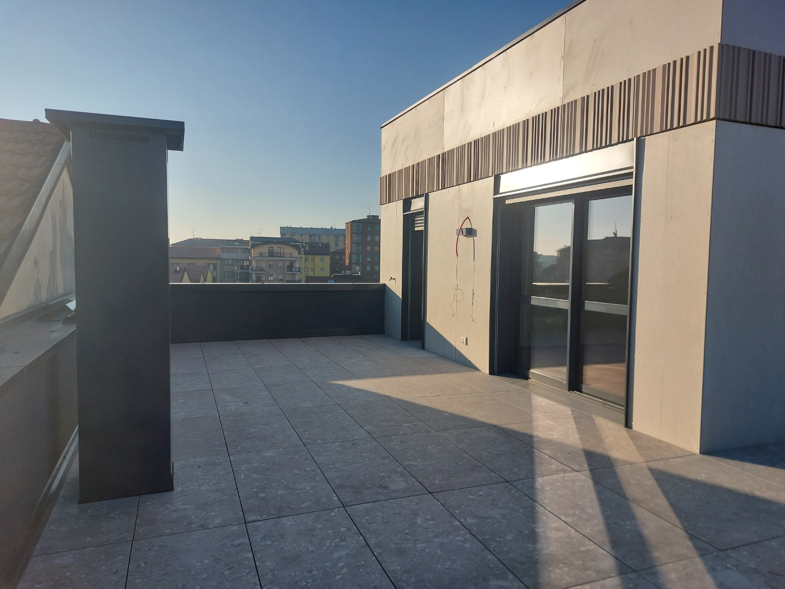 Descrizione: l’appartamento è composto da un soggiorno con ampie vetrate che si affacciano su un grande terrazzo angolare con vista panoramica, cucina a