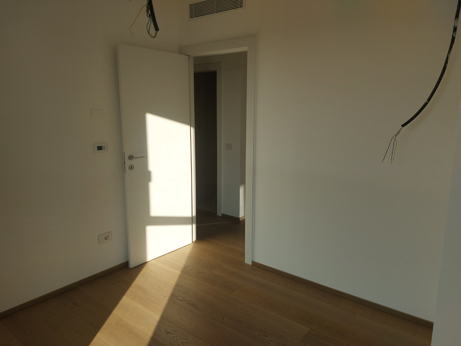 letto padronale con cabina armadio, una seconda camera, un bagno con finestra e un pratico ripostiglio.