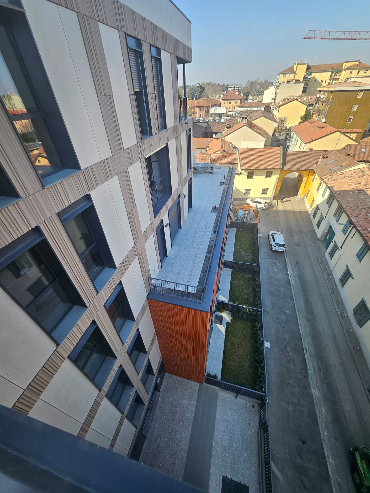 rifacimento del tetto nuovo con pannelli fotovoltaici, cappotto termico della facciata interna, l’installazione di nuovi ascensori e la sostituzione dei serramenti e delle porte blindate, tutti interventi volti a una riqualificazione energetica dello stabile che lo porta in classe energetica B.
